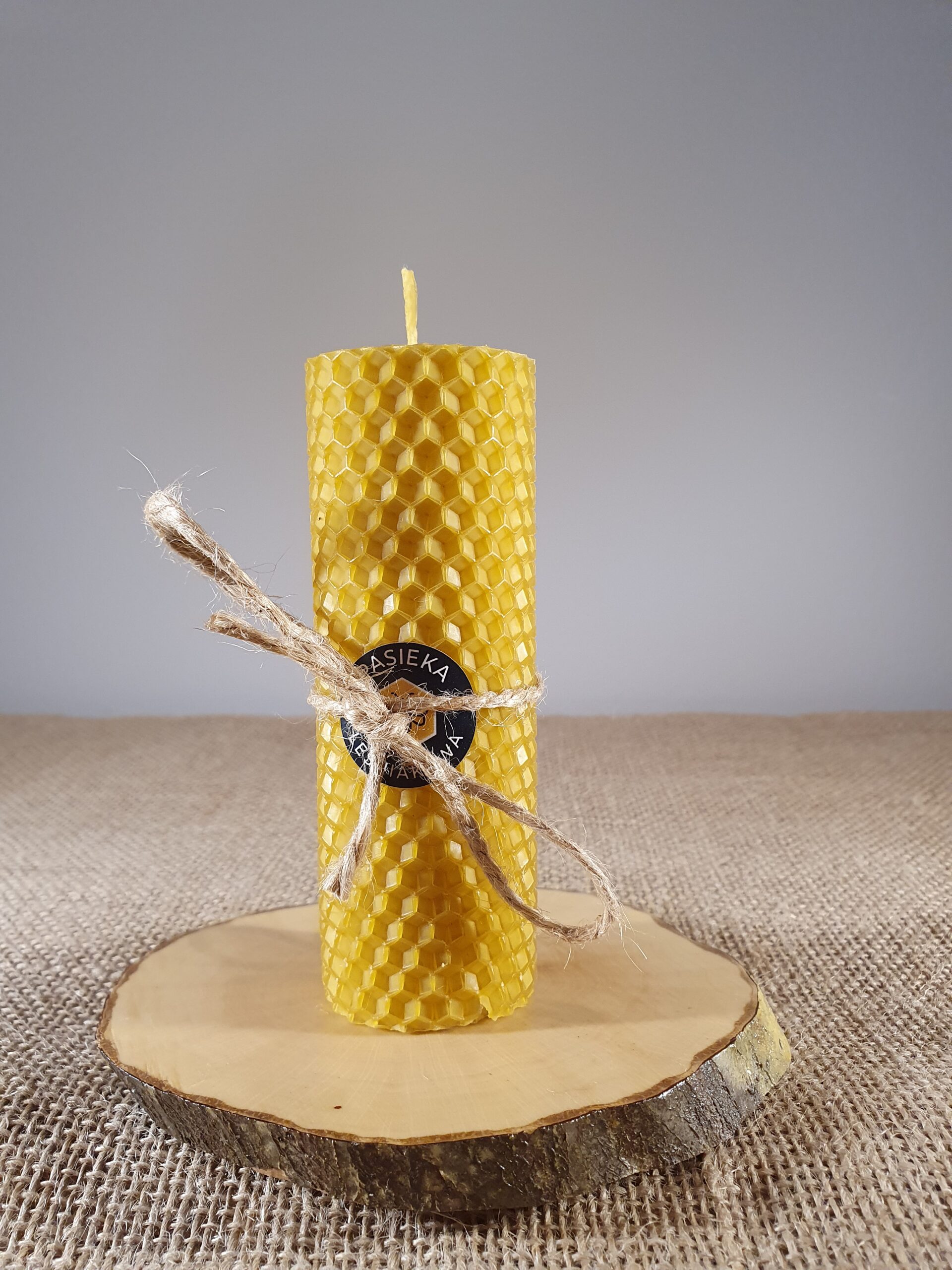 Świeczka wykonana z naturalnego wosku pszczelego. O wysokości 13 cm.